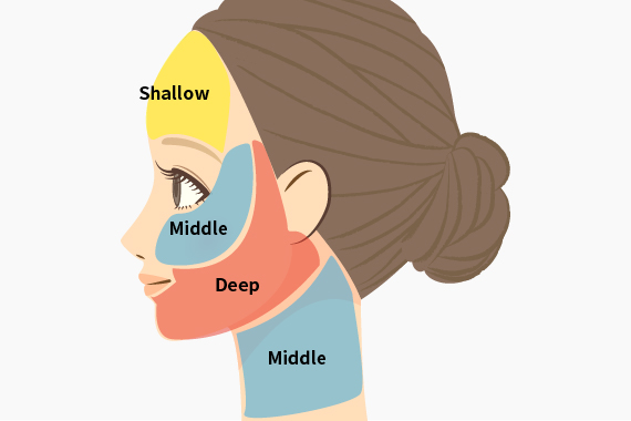 より深部のSMAS 層や脂肪層まで熱を届け、フェイスラインを引き締め、脂肪燃焼を促進します。